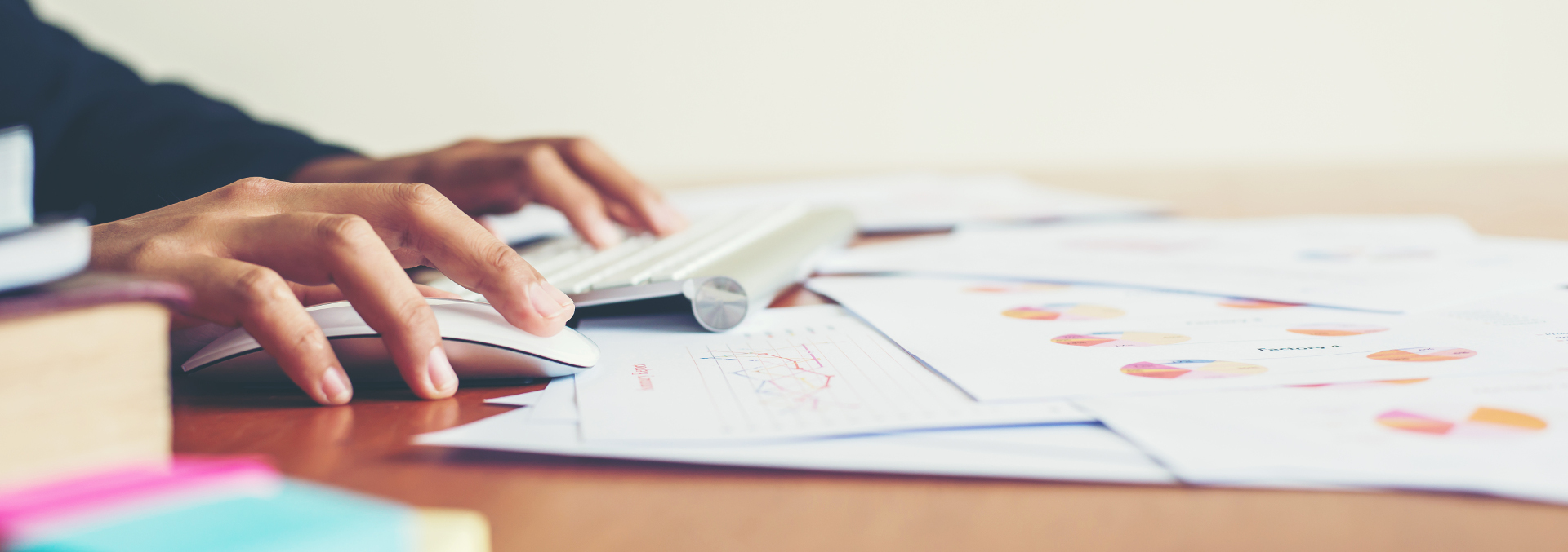 Hands of woman woman typing and working at office.